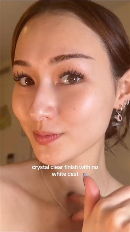 This primer provides a dewy, crystal-clear finish that dries down clear without leaving a white cast.